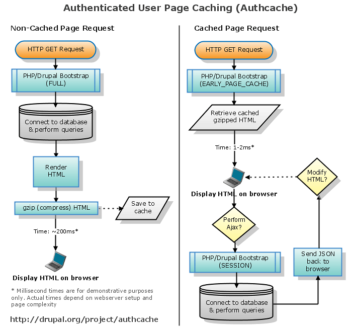 然后,我们就要说说更理想的登录用户缓存问题了,如果页面是动态生成的,我们再怎么做缓存,性能上也比不过直接缓存成静态页面,那么有办法么? Authcache 模块可以在一定程度上帮到你,但要注意的是,登录用户缓存的情况非常复杂,我们在采用 Authcache 模块之前要想好适不适合自己。