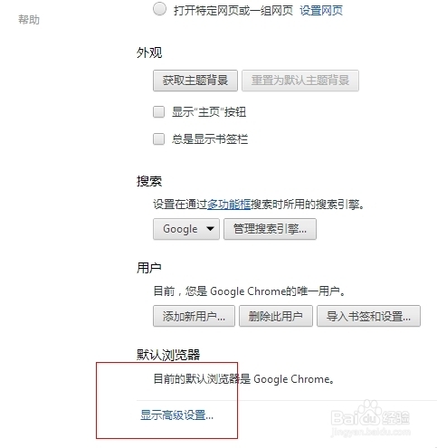 在打开的新页面内找到“显示高级设置”,点击它展开高级设置。