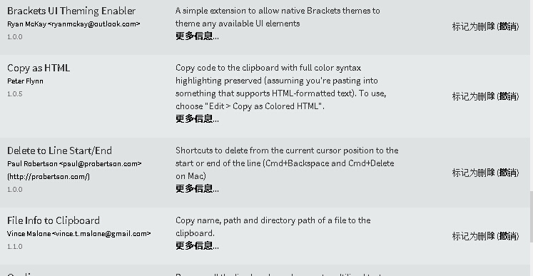 扩展的用法 见 https://brackets-registry.aboutweb.com/ 在某扩展下 看到 more info